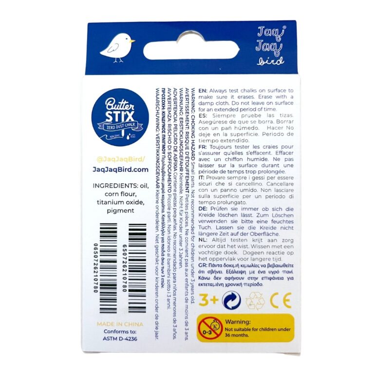 Confezione con 12 gessetti colorati + impugnatura Butterstix (BSC-HOL19) - Gessetti zero polvere, non macchiano e sono facilmente lavabili dalle superfici. Utilizzabili su tutte le superfici non porose come lavagne non in ardesia, vetro, plastica ma soprattutto su gli album cancellabili JAQ JAQ BIRD. Il portagessetti permetterà al tuo bambino di usare anche i gessetti più piccoli senza sforzo, oppure quelli più grandi prevenendo la rottura! Ideale anche per le manine dei più piccini.