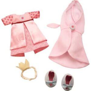 Abito da principessa per bambole in stoffa HABA. Contenuto: 1 vestito, 1 mantello, 2 scarpe con fiocco, 1 corona. Adatto per bambole Haba da 30 cm.