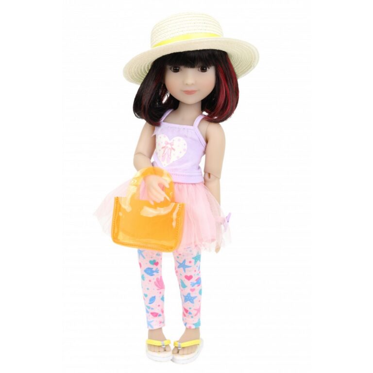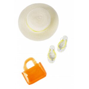 Outfit per bambole Ruby Red Siblies (30,5 cm). Com'è la vita senza accessori? Perfeziona la tua giornata in spiaggia con questa adorabile collezione. Include un cappello di paglia a tesa larga, una borsetta in vinile arancione trasparente e un paio di infradito a pois gialli. Bambola non inclusa.