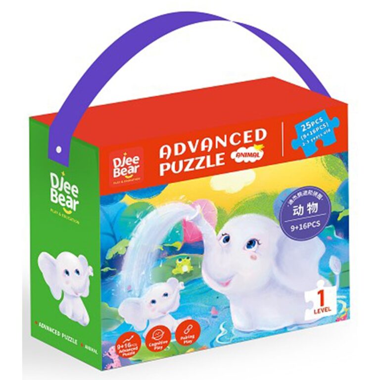 Il Djee Bear Advanced Puzzle - Animal è pensato per i più piccoli che iniziano ad approcciarsi al mondo dei puzzle. Include 2 puzzle (9 e 16 pezzi) con simpatici animali e illustrazioni colorate. Le dimensioni grandi dei pezzi e il livello base lo rendono ideale per bambini dai 3 anni, aiutandoli a sviluppare coordinazione, concentrazione e motricità fine.