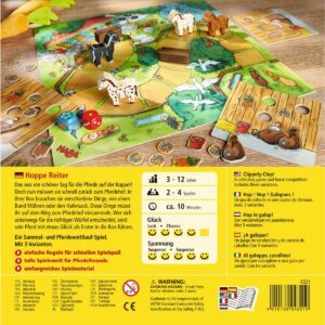 Con Hoppe Reiter di HABA, i piccoli fantini dai 3 anni si sfidano in una corsa a cavallo piena di sorprese! Un gioco divertente e educativo che sviluppa logica, decisione e tanto spirito di squadra. (Scatola in Tedesco – Istruzioni in Italiano)
