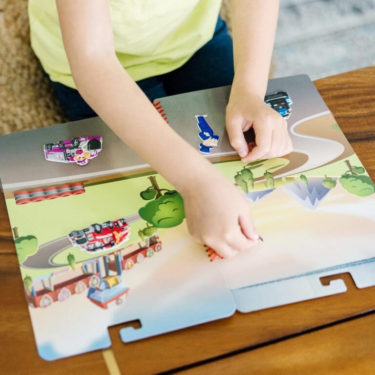 Questo set include un libro con scene 3D e 34 adesivi morbidi riutilizzabili. I bambini potranno creare storie infinite, posizionando e riposizionando gli adesivi sulle scene lucide.