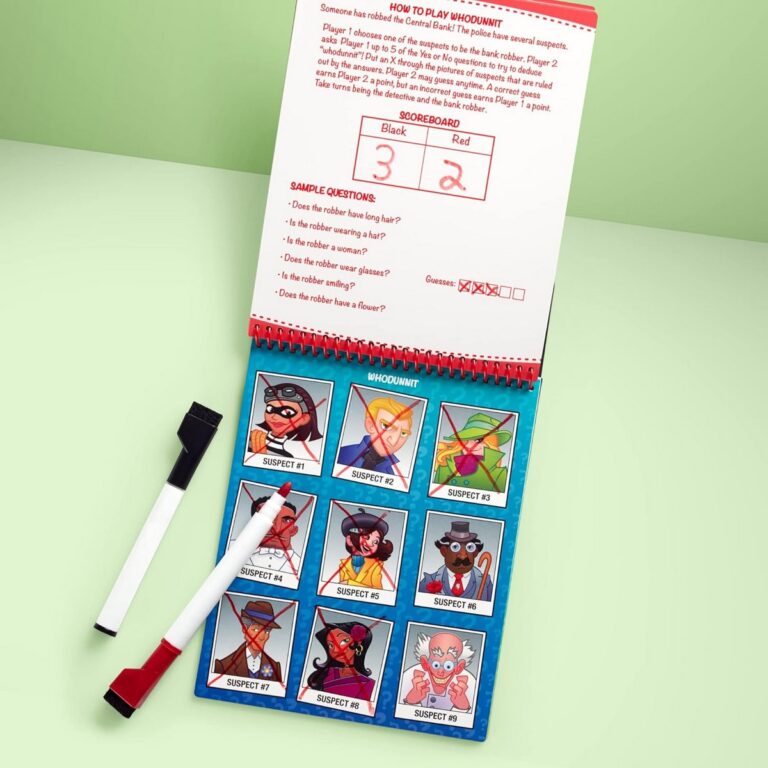Scrivi e cancella quante volte vuoi con i pennarelli inclusi, per un divertimento senza fine. Perfetto per viaggi, vacanze o semplicemente per passare il tempo a casa.