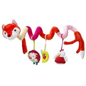 Alice, la volpe, si avvolge tutta intorno al passeggino o al seggiolino, con tante attività per stimolare il bambino: specchio, poti poti e piccola campanella! Dimensione : 48x12x9 cm