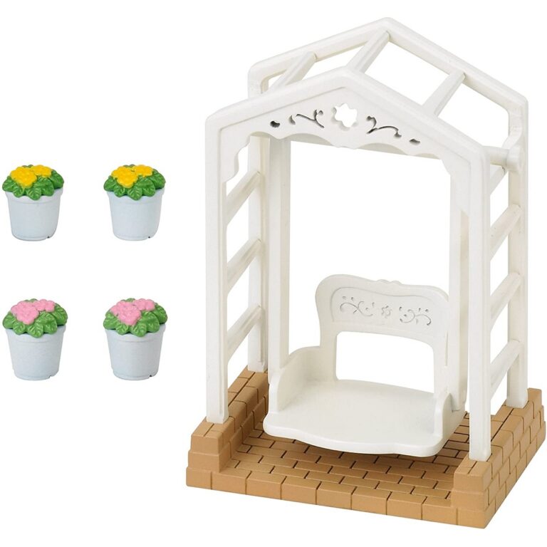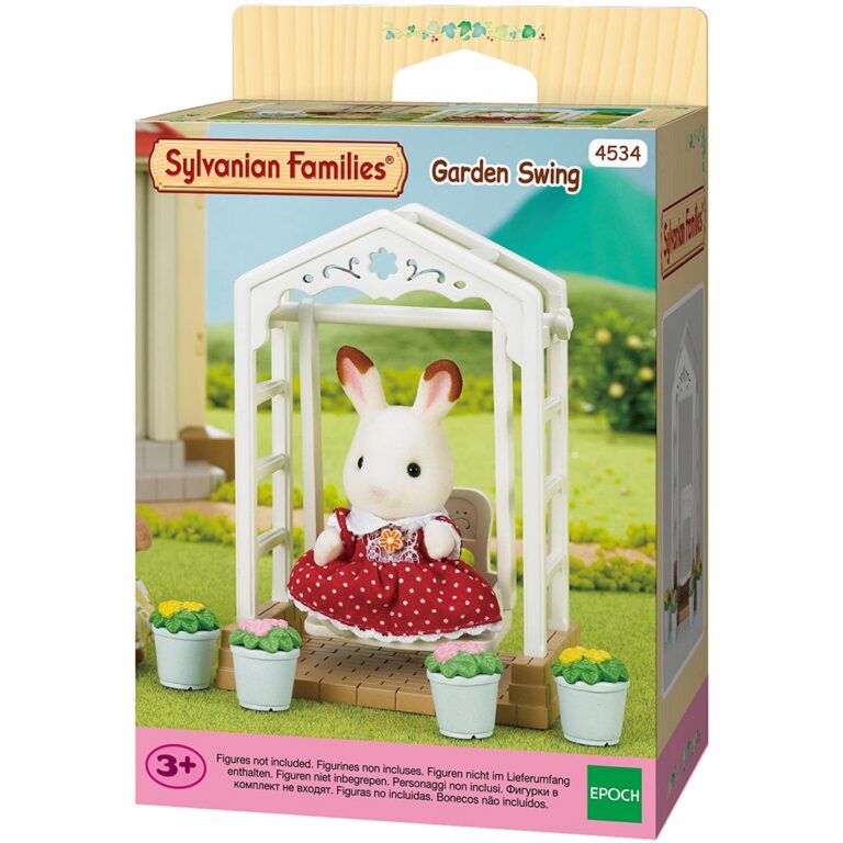 Altalena da esterno Sylvanian Families con 4 vasi di fiori primaverili. Perfetta per momenti di gioco all’aperto e scenette colorate. Personaggi non inclusi. Dai 3 anni.