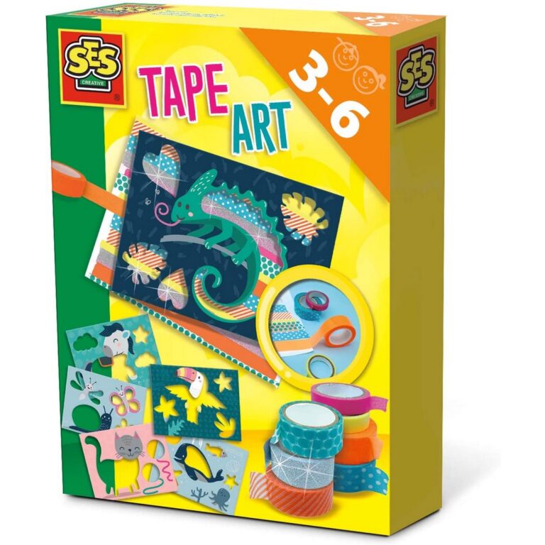 Scopri il divertimento creativo con il set Animali realizzati con il nastro adesivo! Un’attività manuale semplice e stimolante, ideale per bambini dai 3 anni in su, che unisce fantasia e colore.