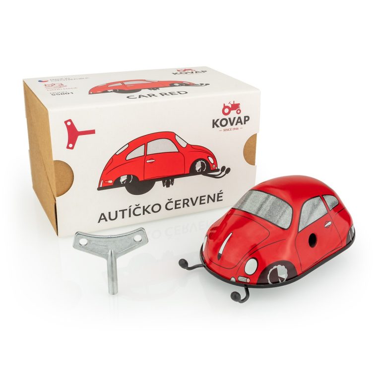 Questa automobile giocattolo rossa a carica, firmata Kovap, è un classico intramontabile che riporta alla mente i giocattoli di una volta.