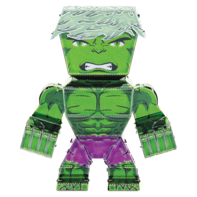 Hulk, l’eroe verde più potente della Marvel, è pronto a unirsi alla tua collezione Metal Earth! Questa miniatura in stile caricatura riproduce l’incredibile forza di Bruce Banner trasformato in Hulk, con un design compatto, colorato e divertente da assemblare.