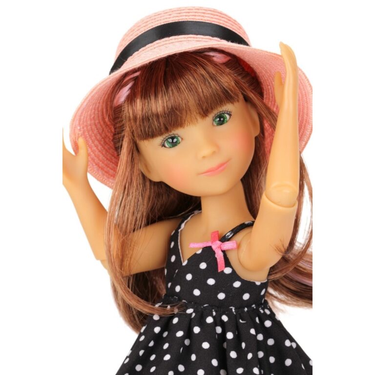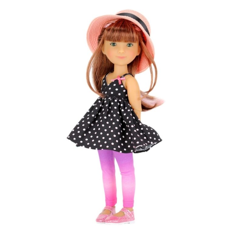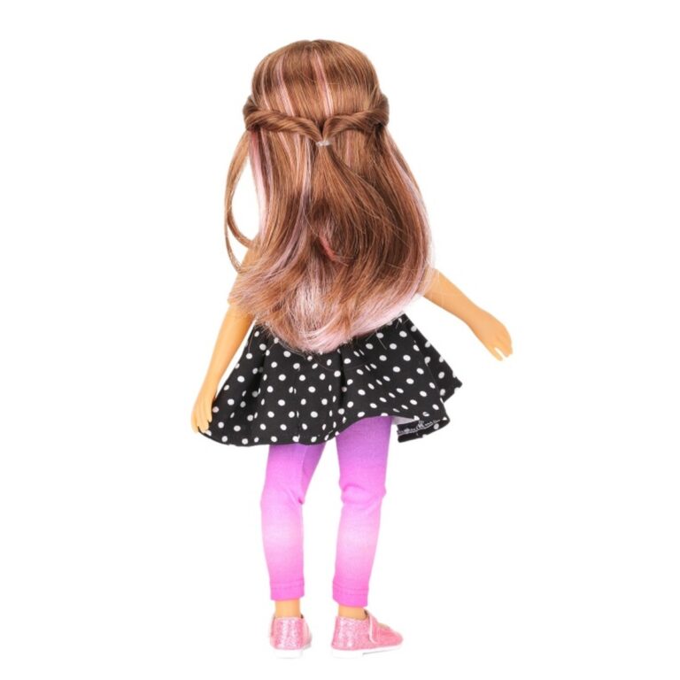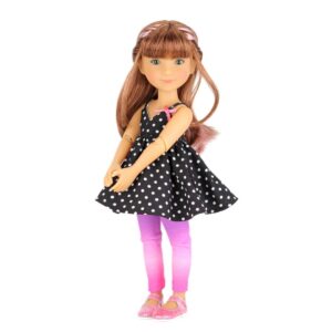 Bambola Bailey - Ruby Red Siblies. Bailey è molto creativa e ama le arti e l'artigianato. Ama fare piccoli regali per la sua famiglia e i suoi amici. Ha lunghi capelli ramati e indossa un prendisole blu a pois, leggings rosa, scarpe con cinturino rosa scintillante e un allegro cappello rosa.Queste bellissime bambole in vinile, alte circa 30,5 cm e con 9 punti di articolazione, sono sorelle, fratelli e amiche!! Amano la musica, la danza, lo sport, l'amicizia e il divertimento. Età: 3+