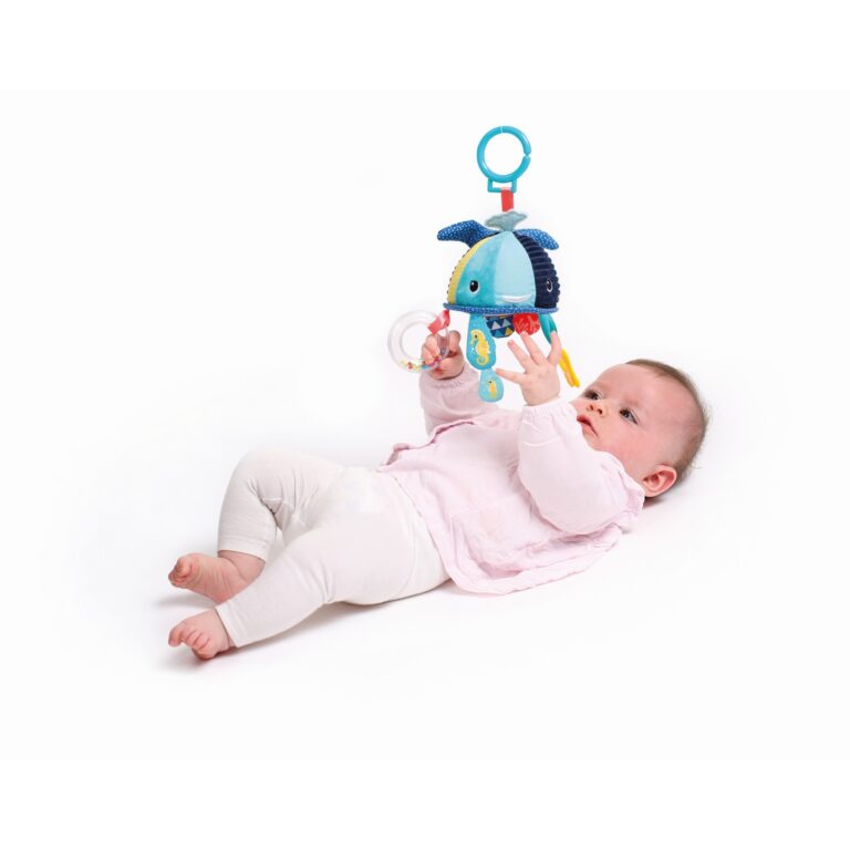 La balena e le sue attività intratterranno il bambino e stimoleranno i sensi, le capacità motorie e la presa.