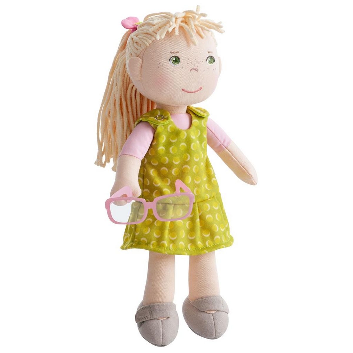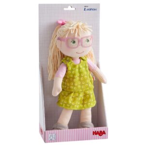 Bambola in stoffa HABA – Ciao, mi chiamo Leonore. Amo i libri e stare insieme alle mie amiche. Se hanno bisogno di aiuto, io sono sempre pronta a dare un consiglio e una mano. Gli abiti possono essere indossati e tolti a piacere grazie alla chiusura a strappo. Età consigliata: + 18M