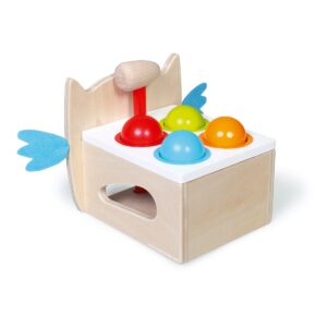 Il colorato gioco del martello "Batti Batti" farà divertire i bambini dall'età di 12 mesi. Le quattro sfere di colore diverso oltre ad aiutare ad apprendere i colori, aiutano nella coordinazione dei movimenti. Che grande divertimento!