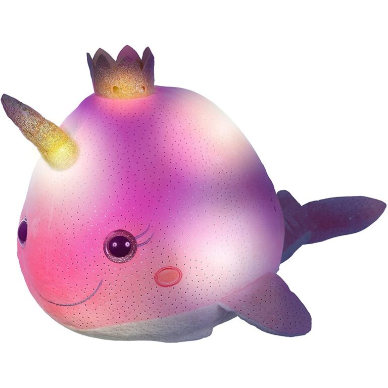 Scopri l'universo magico e acquatico di Gipsy con Bellabloo, il narvalo musicale e luminoso. Questo grazioso peluche di paillettes color corallo ha 3 funzioni: emette graziose melodie, muove la coda e si illumina. Il suo corno e la sua piccola corona d'oro piaceranno a tutti i piccoli sognatori! Incluso c'è anche un elatico per capelli a forma di stella marina. Quando arriva l'ora di andare a dormire, attiva la modalità silenziosa in modo che Bellabloo sia di nuovo coccoloso. Funziona con 3 batterie LR03 incluse. Dimensione: 35cm - Età: +18M
