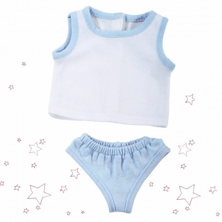 Biancheria intima per la tua bambola. Questa piccola maglietta ha una striscia in velcro che rende facile indossarla e toglierla di nuovo. Ideale per bambole dimensione: 30-33cm, 45-50cm