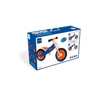 Prima biciclettina in legno senza pedali, leggera e maneggevole,  pensata per aiutare i bambini ad acquisire le tecniche di bilanciamento e di equilibrio. Rende più semplice il passaggio alla bicicletta con pedali. Adatta dai 2 anni. Sedile regolabile in altezza. Dimensioni : 83x54x37 cm