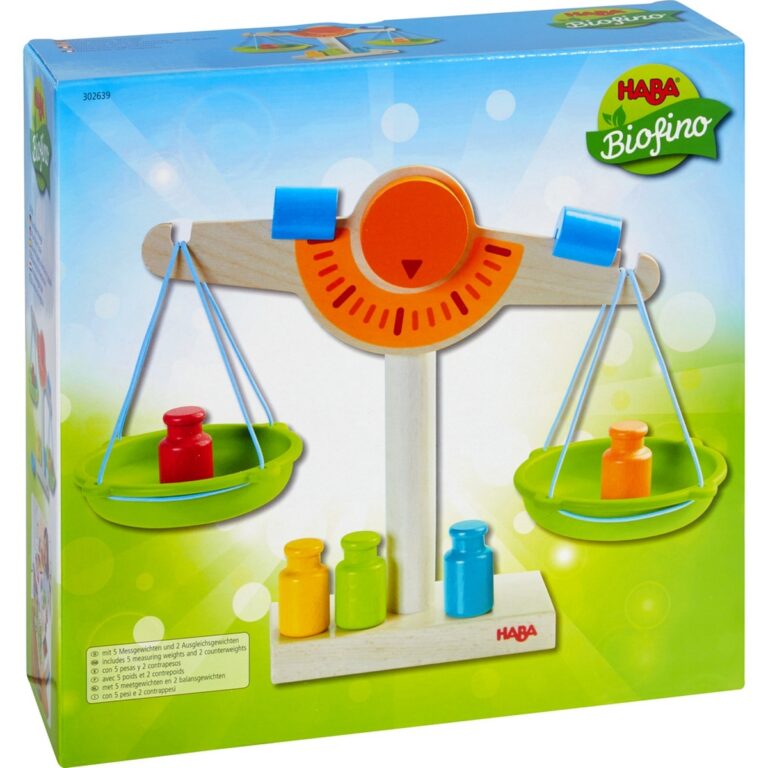 Quanto ne vuole? Con questa bilancia da negozio la pesatura precisa delle merci è facile e fa divertire un sacco! Il gioco stimola la motricità fine, la concentrazione e la coordinazione occhio-mano. Contenuto: 1 bilancia con 2 piatti in plastica, 5 pesi, 2 contrappesi.