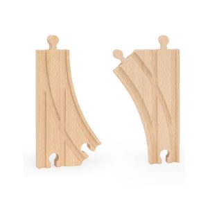 Questa deviazione Viga per trenino in legno è un componente essenziale per aggiungere dinamicità e scelte ai percorsi ferroviari dei bambini.