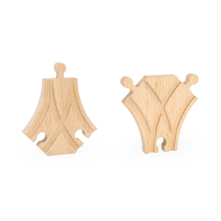 Realizzata in legno di faggio di qualità per garantire resistenza e sicurezza, questa deviazione permette di dirigere il treno su binari differenti, creando diramazioni e rendendo il gioco ancora più coinvolgente e strategico.