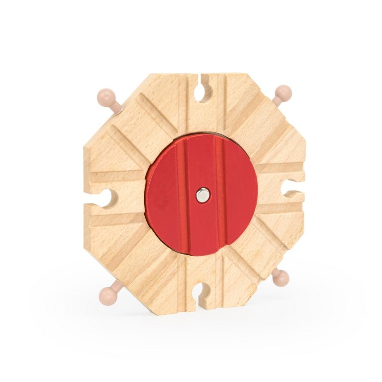 Realizzata in legno di faggio di qualità per garantire robustezza e sicurezza, questa piattaforma girevole permette di cambiare la direzione dei treni in modo semplice e divertente.