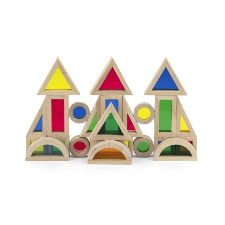 Contenuto: 24 blocchi in legno con inserti colorati trasparenti