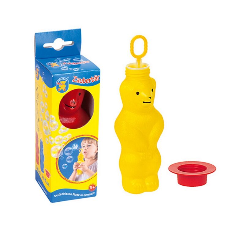 Premi delicatamente la pancia dell'orso e in modo misterioso l'anello per fare le bolle si solleverà. Queste bolle sono una vera magia! Età: 3+ Dal 1948 Pustefix produce giocattoli e altri articoli per fare bolle di sapone per bambini. Il liquido Pustefix, fabbricato in Germania secondo una formula segreta, è famoso in tutto il mondo per le belle bolle con i colori dell'arcobaleno. Ovviamente è del tutto sicuro per i bambini!