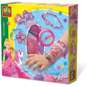 Attenzione ragazze! SES vi porta un nuovo set per creare braccialetti di brillantini! Con il filo di brillantini e la ciniglia, potete creare voi stesse degli splendidi braccialetti. Potete usare il filo e la ciniglia in molti modi diversi. Potete piegarli, intrecciarli, annodarli…date sfogo alla fantasia! Unite e abbinate i vari colori e le perline, aggiungete dei ciondoli e fatevi ammirare! Contenuto della scatola: filo con brillantini in 3 colori, ciniglia in 4 colori, perline in 5 colori, ciondoli, adesivi, istruzioni. Età: 4+