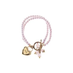 Lasciati conquistare dal fascino di questo bracciale a due fili di perle, impreziosito da un medaglione dorato con l'incisione 'xoxo' e deliziosi pendenti.