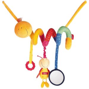 Bruco in stoffa con diverse attività per stimolare i sensi del bambino. Si può attorcigliare facilmente ovunque. Dimensione : 45 cm