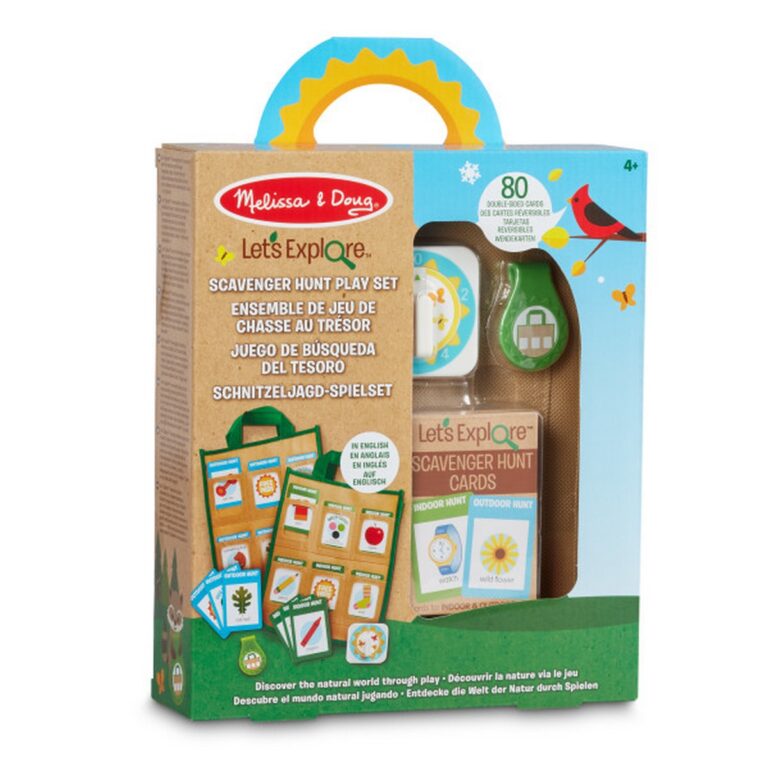 Gioco caccia al tesoro (Lingua Inglese) - Un' emozionante caccia al tesoro ti aspetta con questo divertente set della linea Explore di Mellissa & Dough. Il set include 80 schede fronte e retro con raffigurati vari oggetti da cercare e due pratiche borse per contenere tutti gli oggetti che trovi. Esplora il mondo esterno, parchi, boschi, spiagge o semplicemente rovista in casa! Il gioco aiuta il tuo bambino a sviluppare capacità di immaginazione e apprendimento. Età consigliata: 3+