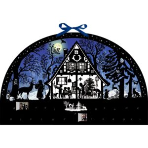Questo grande calendario sagomato con 24 finestrelle è decorato con lamina argentata e dotato di nastro per appenderlo ovunque tu voglia. La silhouette nostalgica, stampata su carta da lucido, crea un effetto luminoso incredibile se posizionata su una finestra o davanti a una fonte di luce, trasformando la stanza in un piccolo mondo incantato.