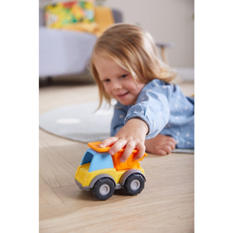 Prima carica, poi trasporta e infine scarica di nuovo: questo bolide giallo è uno degli eroi del cantiere! Ideale per giocare al chiuso e all’aperto, si asciuga facilmente grazie al foro di scarico dell'acqua nel fondo removibile.