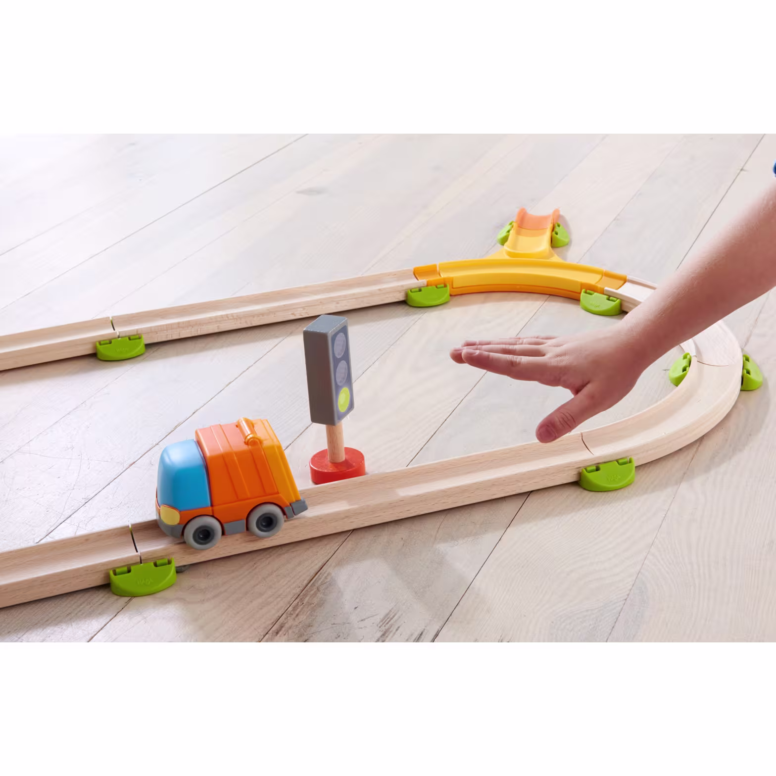 Sebbene sia una ottima aggiunta a tutti i percorsi di gioco HABA Cars, integrandosi perfettamente con le piste da corsa esistenti, il Camion della Spazzatura è anche perfetto per il gioco libero sul pavimento.