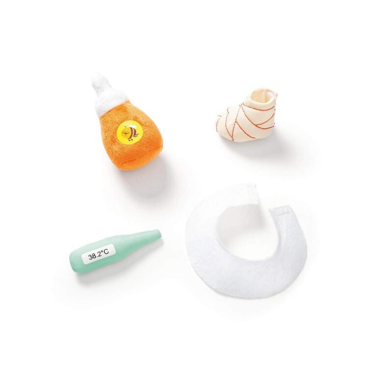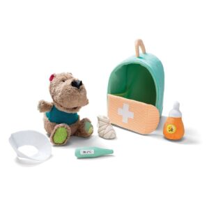 Povero Cesar, si sente proprio a pezzi! Visitalo come un vero veterinario e cura il tuo orso preferito. Ha bisogno di una stecca o di una ingessatura? Hai verificato se ha la febbre? Ha preso le sue medicine? Quando lo avrai curato, fallo riposare nella sua cuccia. Praticissimo, puoi portarlo con te ovunque per tenere sotto controllo il suo stato di salute.