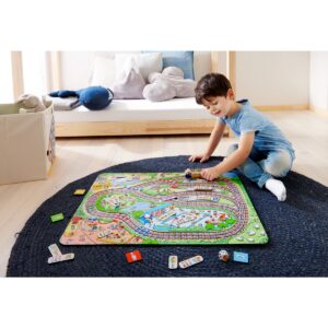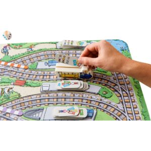 Contenuto: 1 tabellone di gioco grande da comporre, 3 scambi colorati, 1 dado degli scambi, 1 treno, 24 tavolette dei passeggeri, 4 tessere fermata, 1 istruzioni di gioco. Da 2 a 4 giocatori.