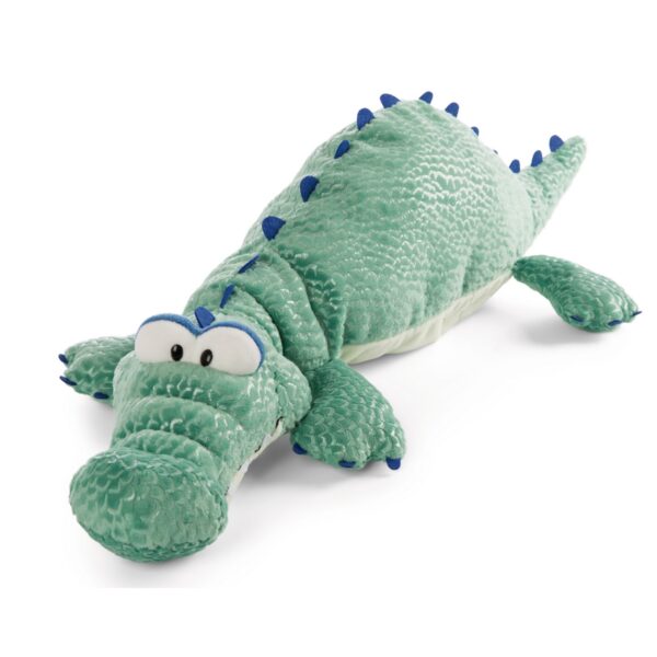 Peluche Croco McDile Nici Green. Il coccodrillo di peluche ha una morbidissima pelliccia realizzata in peluche NICI di alta qualità. Con la buffa espressione del viso, gli occhi a bottone e gli artigli blu, conquisterà tutti gli appassionati di coccodrilli. Croco McDile è un compagno particolarmente leale e paziente che ama tanto giocare e fare le coccole! Ti piacerebbe essere il suo nuovo compagno di giochi? Per la nuova collezione WILD FRIENDS, NICI utilizza quasi esclusivamente peluche e imbottiture realizzati con materiali riciclati. Dimensione: 68 cm