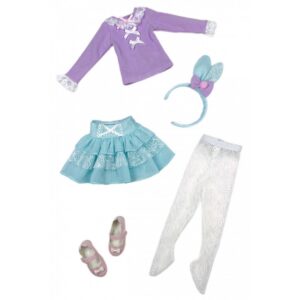 Outfit per bambole Ruby Red Fashion Friends (37 cm). La tua bambola sarà davvero molto elegante con questo favoloso outfit composto da top color lavanda, gonna a balze, leggings in pizzo, scarpe rosa pastello e un cerchietto a forma di coniglietto molto speciale. Pronti per festeggiare? Bambola non Inclusa