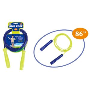 Con i suoi allegri manici gialli facili da impugnare e la vivace corda blu, saltare diventerà un gioco da ragazzi. È lunga 218 cm, la misura perfetta per far scatenare i bambini in giardino, al parco o dove vogliono!
