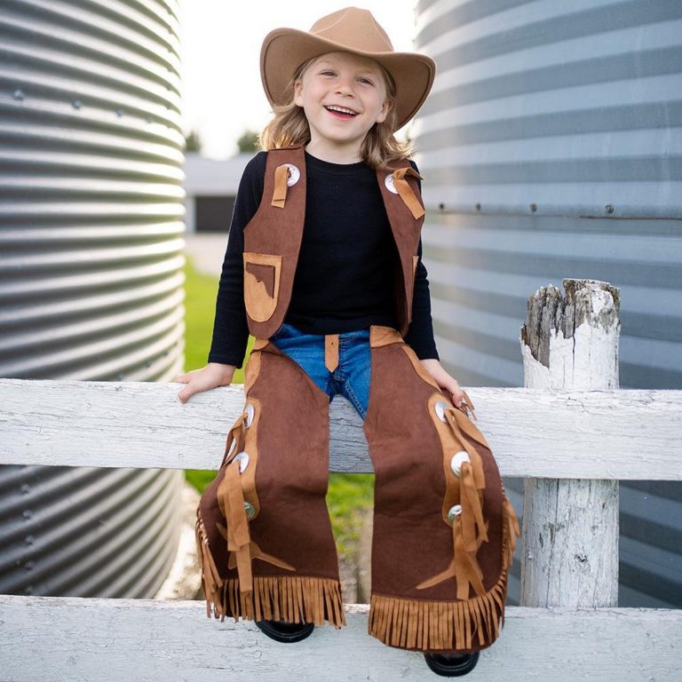 Con questo completo composto da gilet e gambali, diventerai la cowgirl più audace o il cowboy più intrepido dell'intero West.