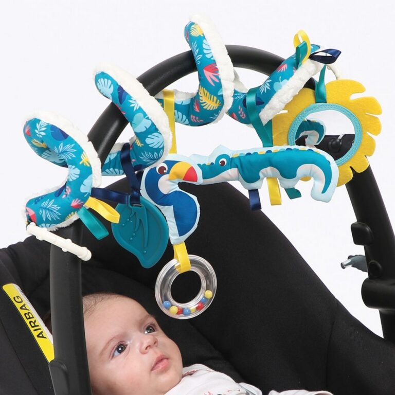 Una bella spirale di attività che si avvolge a molteplici supporti, dal lettino al seggiolino dell’auto.