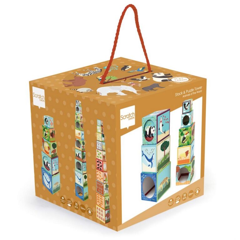 I puzzle per bambini di Scratch Europe hanno un design colorato e accattivante e sono progettati con pezzi di dimensioni adatte alle mani anche dei più piccoli, in modo che possano manipolare e assemblare i pezzi facilmente.
