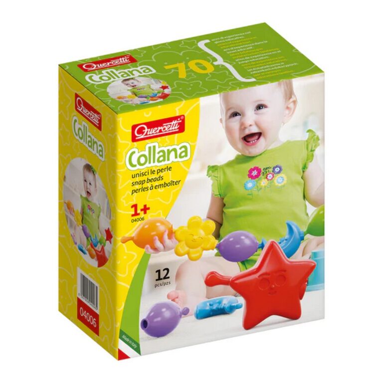Grandi elementi leggerissimi di forme facilmente riconoscibili e piacevoli da maneggiare, si incastrano facilmente tra di loro per realizzare lunghe collane in sequenze sempre diverse.