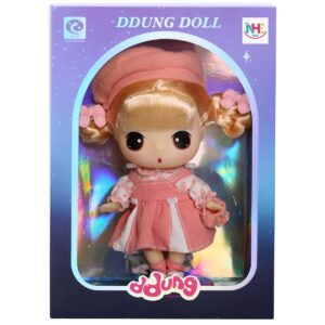 Porta a casa un concentrato di dolcezza con la Bambola Ddung 18 cm - Modello FDE1873.DUN, perfetta per chi ama lo stile tenero e retrò. Questa adorabile bambola della linea Ddung Doll, famosa per il suo design coreano kawaii, si presenta con un look romantico in rosa: indossa un vestitino a pois con grembiule rosa pesca, fiocchi decorativi e un morbido basco coordinato. I suoi capelli biondi raccolti in due trecce con fiocchetti rosa completano un look che conquista grandi e piccini.