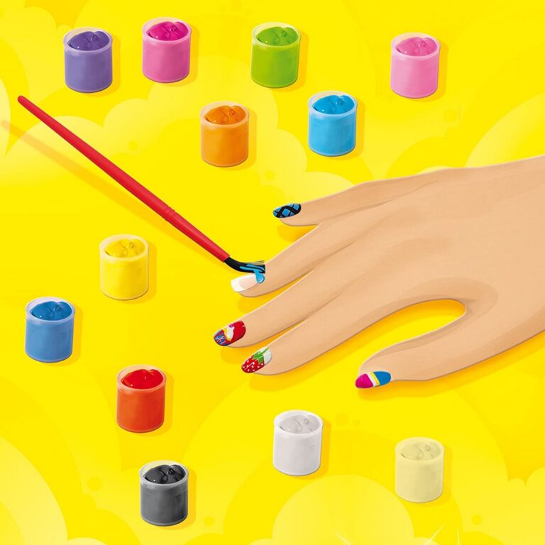 Imperdibile per tutte le bambine alla moda! Niente più unghie insignificanti grazie a questo fantastico set SES. Divertente e semplice da utilizzare, le unghie sono sicure e si rimuovono facilmente. Un'idea regalo originale, un passatempo perfetto per le giornate di pioggia. Questo kit è ideale per sviluppare la coordinazione mano-occhio nei bambini. Lo smalto è a base d'acqua e si lava via facilmente. Contenuto della scatola : 10 unghie, pietre preziose assortite, 12 vasetti di tempera, 1 pennello, carta adesiva assortita. Età consigliata: 6+