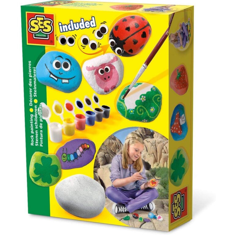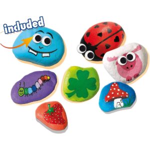 Un fantastico kit e un modo facile per stimolare la creatività negli amanti della natura! Questo fantastico kit contiene il materiale (pittura, pennello, occhi finti) per pitturare un sasso e trasformarlo in un personaggio! Con i sei colori vivaci puoi pitturare i sassi come più ti piace e iniziare a collezionare i più belli.
