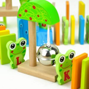 Questo gioco del domino si compone di allegre tessere in legno di diversi colori, con le quali è possibile costruire un emozionante percorso. Una porticina con campanello aspetta le tessere al traguardo. I piccoli inventori possono diventare anche grandi costruttori, aumentando il loro grado di concentrazione e dando libero sfogo alla loro creatività. Un'esperienza di gioco emozionante che non dovrebbe mancare in nessuna cameretta dei bambini.  Età: 3+