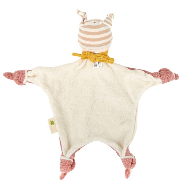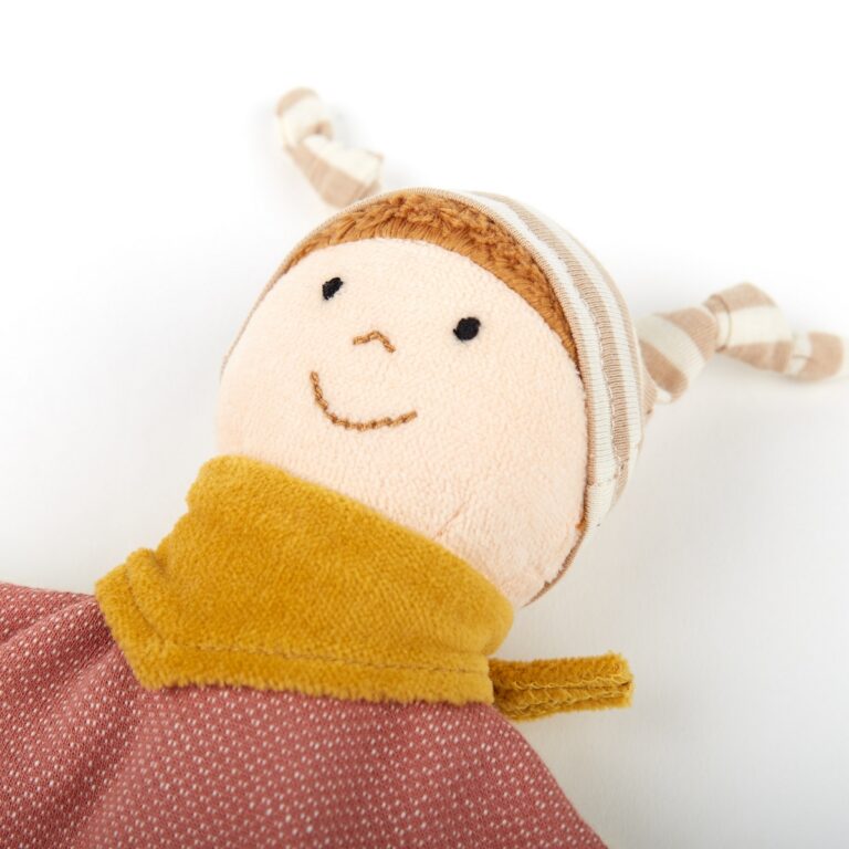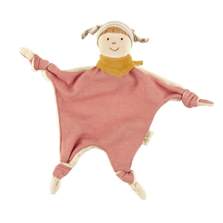 Doudou Bambolina - Green Collection. Nella realizzazione di questa morbidissima bambolina doudou sono stati utilizzati solo materiali organici naturali. I suoi angoli annodati facili da afferrare presentano diversi tipi di tessuto. I tratti del viso sono ricamati. Questo doudou soddisfa il bisogno di calore, compagnia ed esperienze tattili del bambino. Dimensioni: 38 x 6 x 35 cm - Età: 0+