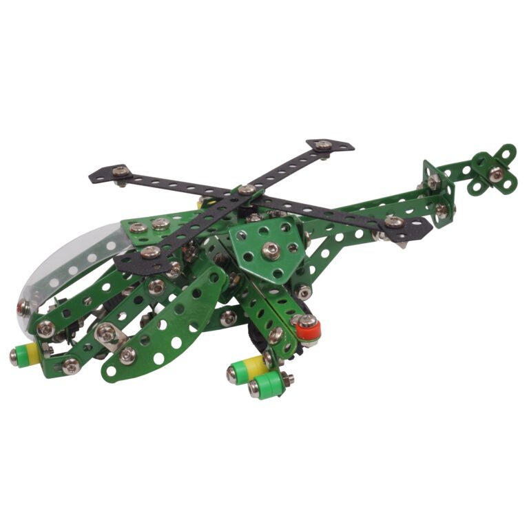 Elicottero Charly Combat - pezzi: 295 - Dimensioni: 17x24x6,5 (h) cm - Età: 8+ - METAL TECHNO è un nuovo ma allo stesso tempo classico sistema di costruzioni che si basa su elementi di acciaio fra loro uniti da dadi e bulloni. All'interno di ogni confezione troverai il libretto di istruzioni con alcuni nozioni di fisica o meccanica e alcune informazioni sul modello specifico. Utilizzando la fantasia e magari unendo più confezioni potrai dare spazio alla creatività e costruire un'infinità di modelli. Questo sistema di costruzioni sviluppa la motricità fine e logica.