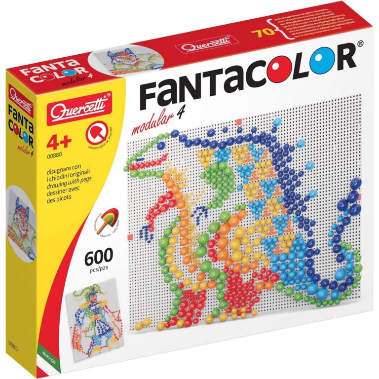 Gioco dei chiodini per bambini. Con FantaColor Modular 4 puoi comporre grandi e bellissimi mosaici! CONTENUTO SCATOLA: 600 Chiodini in 4 diametri diversi (5, 10, 15, 20 mm) e 6 colori, 4 Tavolette modulari traforate, 4 cestelli portachiodini, 8 connettori.