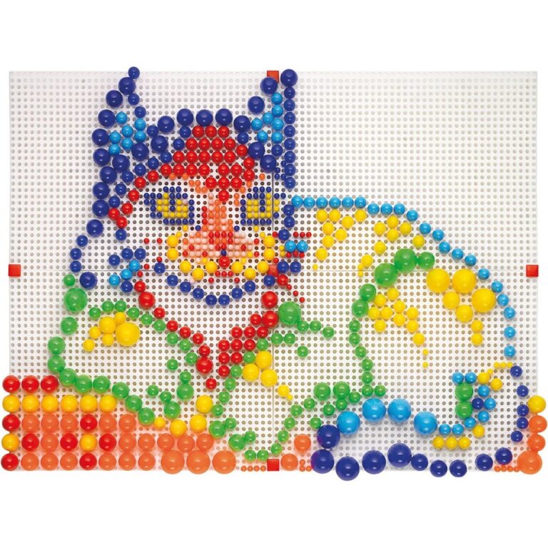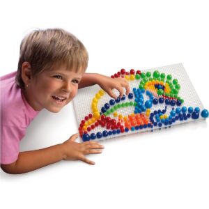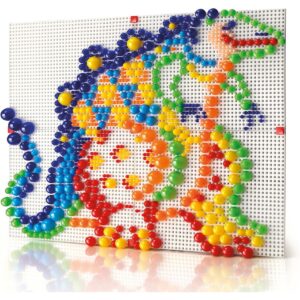 Fare mosaici, inserendo i chiodini nelle tavolette traforate, è un’attività divertente, creativa ed educativa, che stimola la sensibilità artistica, addestra la coordinazione occhio-mano e sviluppa le capacità manipolative.