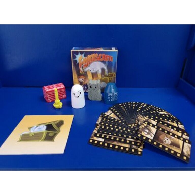In Fantascatti nuova edizione dovrai essere più veloce dei tuoi avversari ad acchiappare i fantasmi! Quando il giovane Tommy, investigatore specializzato in casi “particolari”, ha sentito dire che nel vecchio maniero si sarebbe potuto nascondere un fantasma dispettoso, non ha avuto dubbi: ha preso la sua fedele macchina fotografica e si è lanciato all’Avventura e natura. Tuttavia ottenere una bella foto non sarà facile, dato che quel mattacchione in lenzuolo bianco continua a muoversi e a spostare tutti gli oggetti presenti nel castello. Nel corso della partita, i giocatori svelano le carte e cercano di riconoscere per primi l’oggetto da acchiappare. Riflessi, colpo d’occhio e sangue freddo saranno fondamentali. Ma state attenti…il fantasma è dispettoso e cercherà di confondervi! Età consigliata : 7+